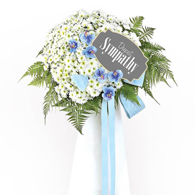 Express your devotion and condolences with this classic standing floral arrangement. Each petal and leaf carries your thoughts and heartfelt wishes, offering a tangible expression of sympathy and support.