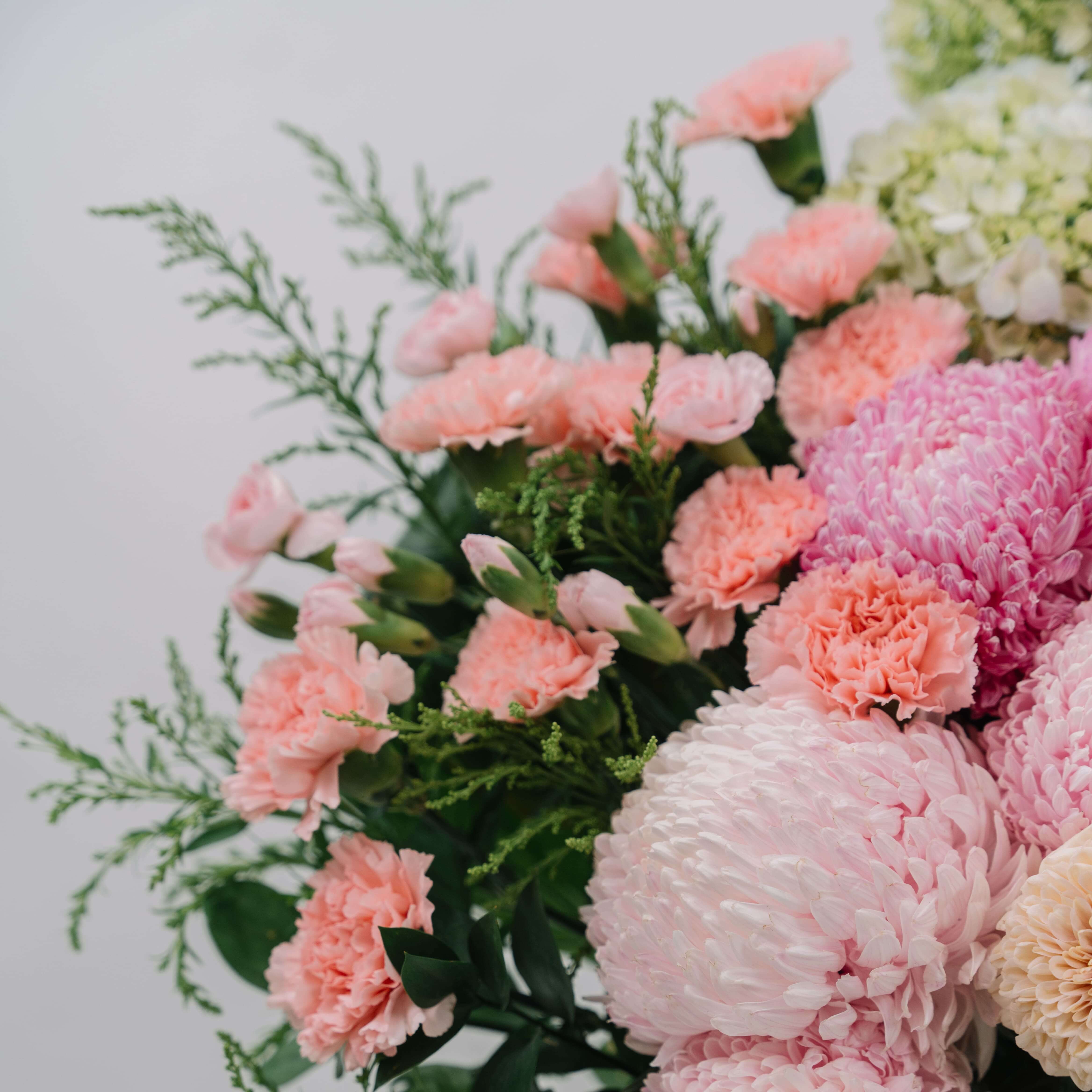Merk, pembungkus, boneka beruang, dekorasi, kemasan/vas, dan filler mungkin berbeda. FlowerAdvisor berhak mengganti item apa pun dengan item lain yang memiliki nilai setara tergantung pada musim dan ketersediaan