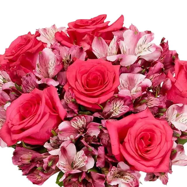 Includes: • Pink Roses • Pink Alstroemeria • Glass Vase • Card Message
