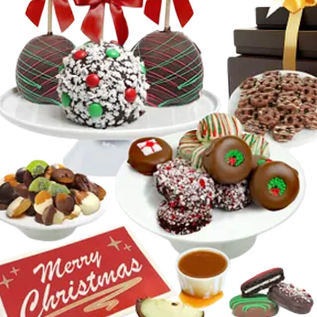 Merry Christmas Belgian Chocolate Covered Fruit Gift Basket - FA29648