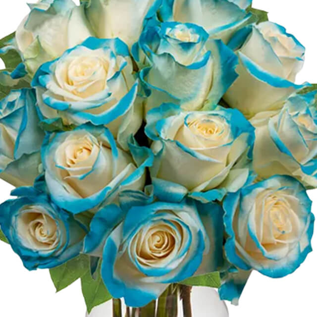 Beautifully tinted roses, this aquamarine color gives a unique and enchanting twist on a classic flower. A thoughtful gesture, show someone you are thinking of them with these effortlessly unique roses. They will surely leave your recipient with a smile on their face, and a warmth in their heart. Flowers are delivered arranged and wrapped in a gift box. Blooms may take 2-3 days to open up, as shown in product photo. Upon arrival, remove flowers from wrap, trim ends of stems and place in vase with fresh water including flower food packet. Flower Freshness Guaranteed