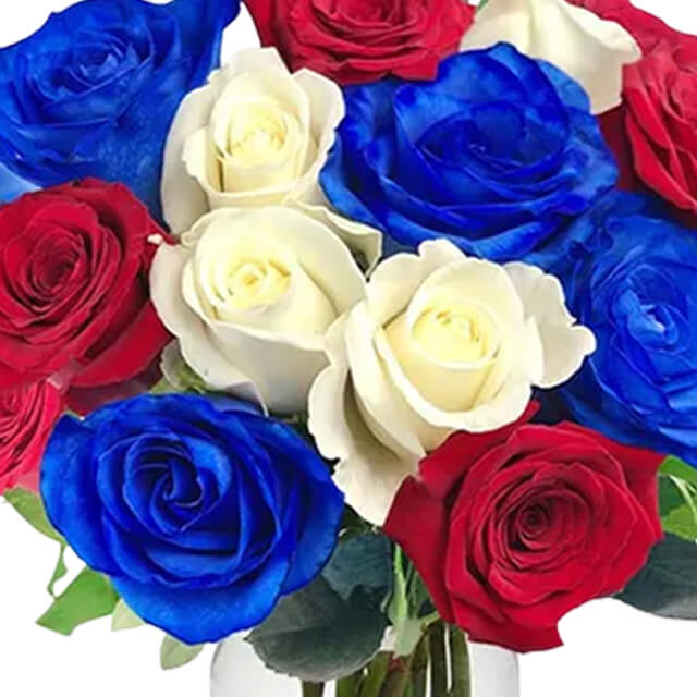 Have you ever seen anything so gorgeous? You won't be able to resist admiring these stunning and inspirational jewel toned roses. Bold, fresh, red, white, and blue roses are perfect to send as a reminder of the beauty of the democratic process or as a Birthday or I love you gift! Blooms may take 2-3 days to open up, as shown in product photo. Upon arrival, remove flowers from wrap, trim ends of stems at an angle under running water, and place them in a vase with fresh water and the included flower food.
