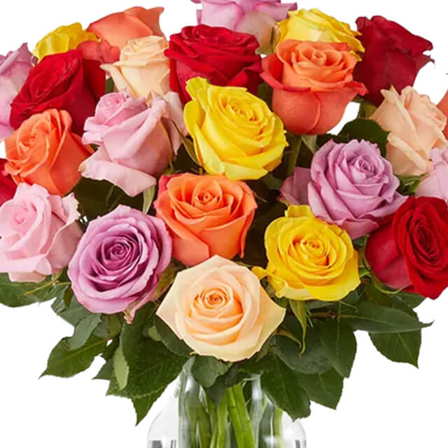 Send a rainbow or roses! This fresh mixed rose bouquet is overflowing with a variety of colors. A stunning display of the world's most popular flower, it is a perfect way to celebrate every special moment in life.